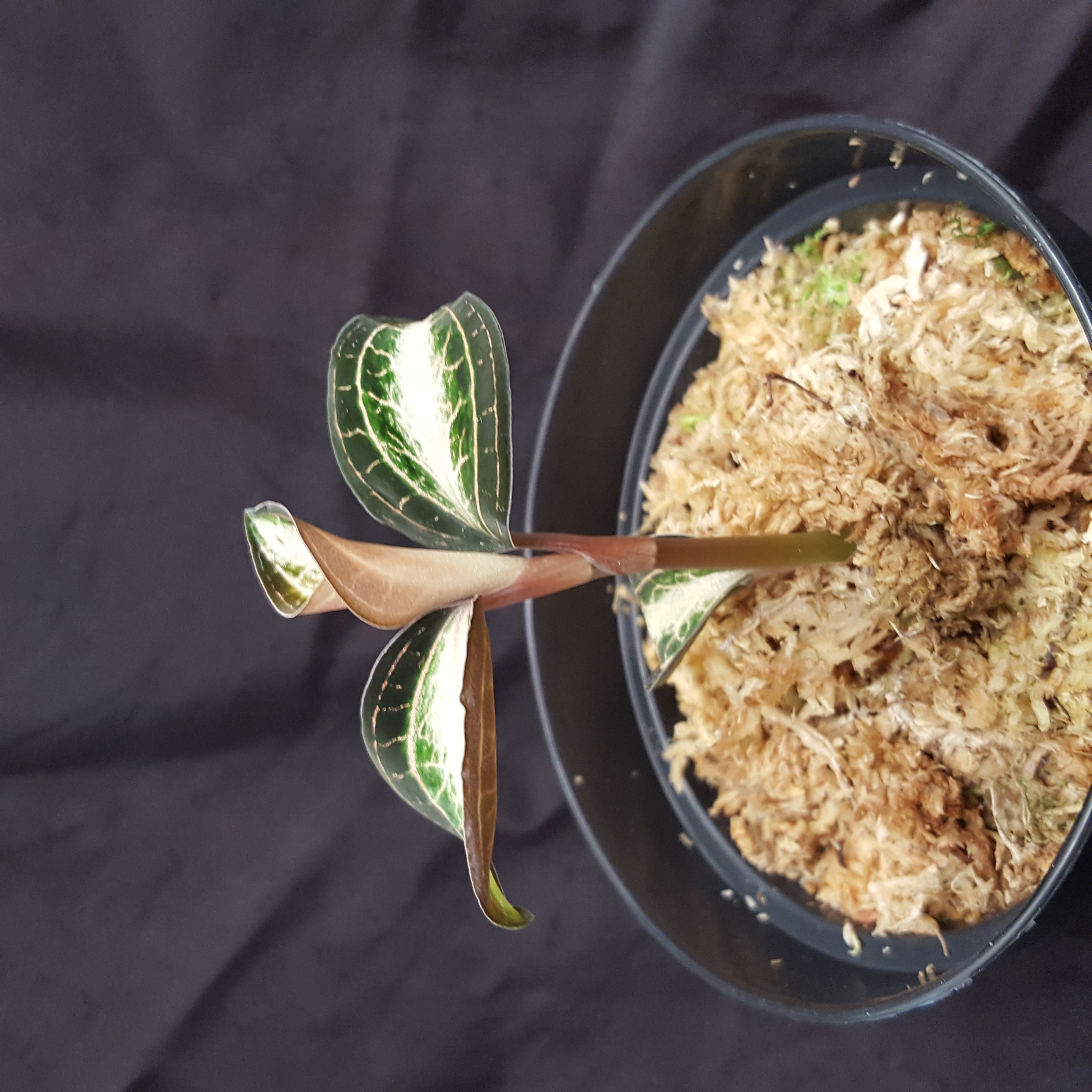 Anoectochilus albolineatus ‘Antarctica’ Parish & Rchb. f. 1874 is a novelty in my assortment and has inspired me from the very beginning. Anoectochilus albolineatus ‘Antarctica’ enchants with its incredibly vivid leaf colouring. The interplay of colours in the design of the leaf colouring is fascinating. In my experience, it grows quite slowly and does not show any pronounced root growth. As an inhabitant of the jungle floor, it should not be exposed to direct sunlight. It likes high relative humidity and should be kept in a substrate that is always moist but not wet. I keep it in pure Sphagnum and have had good experiences with it. The Anoectochilus albolineatus ‘Antarctica’ young plants for sale are potted and are similar to the Anoectochilus albolineatus ‘Antarctica’ shown in the pictures. They are best kept at normal room temperature, if possible in an open glass container such as a lantern, a wide vase, a terrarium or something similar. This jewel orchid is often sought after for its beauty and is certainly a highlight in any collection. Not suitable for consumption without a pot. Waterlogging is very likely to kill it. Please also be sparing with fertilising and, if possible, only use rainwater for watering. The pictures shown are examples, the plant you purchase is similar to the pictures. You are buying a young plant.