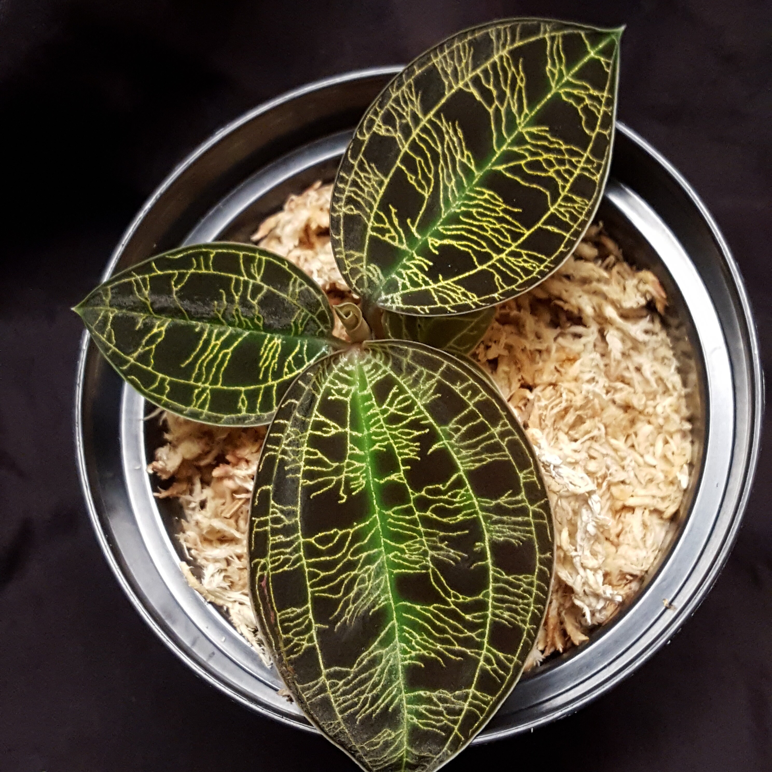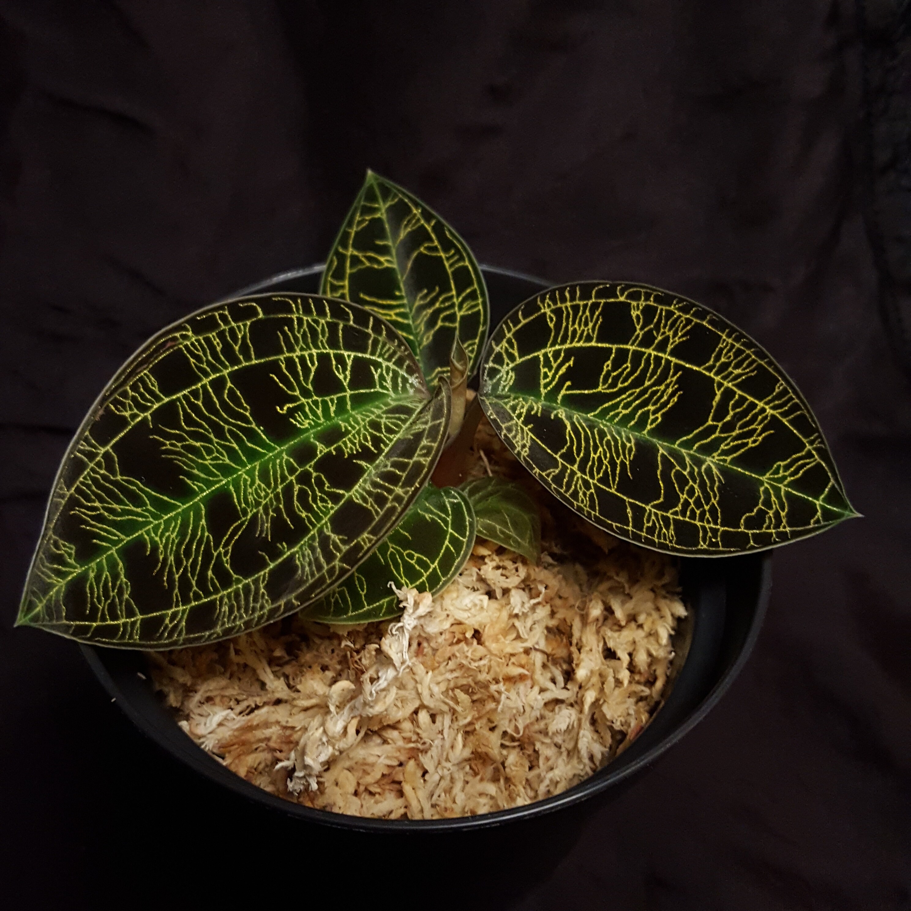 Hundreds of tiny flashes of stardust adorn the leaves of Macodes petola ‘Exotic Jungle’ [Bl.] Lindl. 1840. In the wild, it can be found in the tropical rainforests of Sumatra, the Philippines, Borneo and Malaysia. This jewel orchid can also be found on Iriomote Island in Japan. This island is also known as the ‘Galapagos of the East’ due to its abundance of species. Macodes petola ‘Exotic Jungle’ is one of several cultivars of Macodes petola that are available. It thrives well in temperate to warm conditions. We pot it in Sphagnum moss, which should always be moist. However, waterlogging should be avoided at all costs, otherwise stem rot can develop. Please avoid direct sunlight. Fertilise sparingly as this jewel orchid grows slowly. You purchase a younger plant.